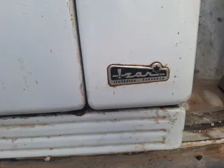 Cocina económica de la marca Izar, fabricada en Izuquiza, Zaragoza. Un modelo clásico y funcional.Cocina de leña o carbón está completa. - Diseño en color blanco. - Placa de cocción. - Horno. -Calentador de agua.
