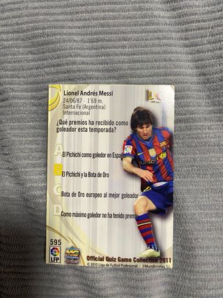 Carta coleccionable de Lionel Messi de la temporada 2009/2010 de La Liga. - Jugador: Messi - Equipo: F.C. Barcelona - Temporada: 2009/2010 - Liga: La Liga