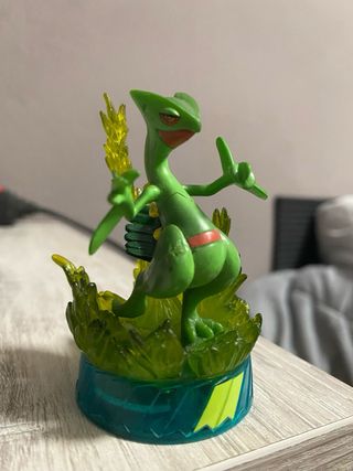 Figura de Sceptile, el Pokémon de tipo planta y dragón. Representa al personaje en una pose dinámica. - Figura de Sceptile. - Incluye base temática.
