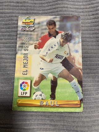 Colecciona este cromo de fútbol de Raúl González de la temporada 95-96. - Cromo de la colección El Mejor de Mundicromo. - Temporada 1995-1996. - Incluye el escudo de la LFP.