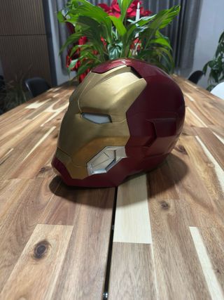 Réplica del icónico casco de Ironman, modelo MK45. Un artículo de colección para fans. - Diseño detallado en tonos dorados y rojos. - Acabado metálico brillante.