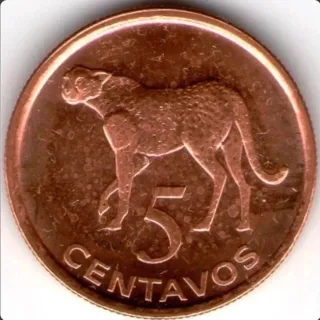 Moneda de 5 centavos con diseño de guepardo. Año 2006 - Diseño de guepardo. - Inscripción CENTAVOS.