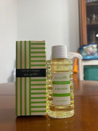 Ma Griffe Eau de Cologne de Carven (Paris, France), un clásico de la perfumería francesa lanzado originalmente en 1946. 🔹El frasco conserva su caja original con el icónico diseño a rayas verdes y blancas, característico de la marca. 🔹El contenido está completo, en muy buen estado de conservación. 🔹Una pieza de colección para amantes de los perfumes vintage y de la historia de la perfumería francesa. 📦Envío seguro y bien consevado