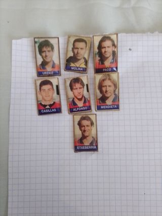Colección de 7 pines de futbolistas de la revista Marca. Cada pin muestra la imagen de un jugador con su nombre. Cada uno a 3€ Todos por 20€ - Pin Urzaiz - Pin Molina - Pin Paco - Pin Casillas - Pin Alfonso - Pin Mendieta - Pin Etxeberria