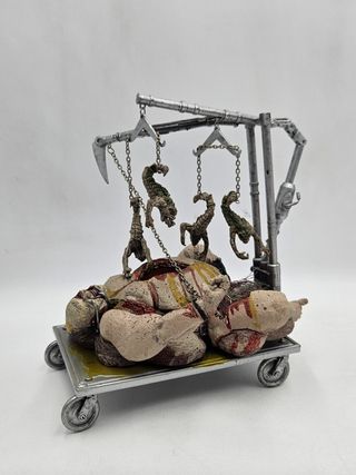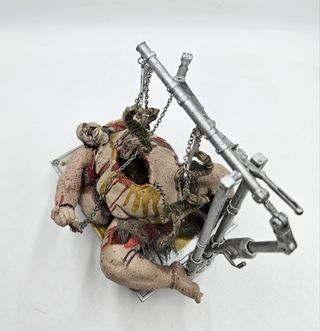 Figura de acción detallada de una criatura grotesca, suspendida por cadenas . Sin caja como nuevo