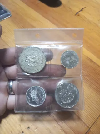 Conjunto de cuatro monedas de plata sin circular. - Moneda de España 1 Euro. Plata 925 - Moneda de Cuba 1982. Plata 720 - Moneda de 1 Peso. Cuproniquel - Moneda con diseño de estrella. Plata925