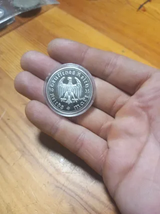 Moneda de plata del Deutsches Reich conmemorativa del año 1935. Presenta un águila imperial en el anverso. - Material: Plata - Año: 1935 - Diseño: Águila imperial