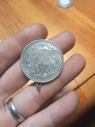 Moneda de plata conmemorativa. - Diseño de Un Peso con el año 1940. - Grabado del sol radiante y ramas. - Borde con detalles. - Material: Plata.