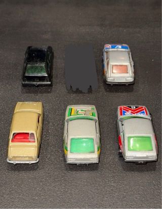 Conjunto de coches antiguos de la marca Mira. Incluye cuatro vehículos de diferentes colores. - Coche amarillo Lancia 037 - Coche blanco y naranja Seat Ibiza - Coche verde Peugeot 205 - Coche morado Audi Quattro 3€ los 4 coches. Se hacen envios
