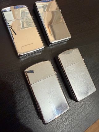 Se venden Zippo Slim Lighter de los años 70 con sus cajas. Ideales para coleccionistas. - Incluye dos unidades. - Diseño clásico Zippo.