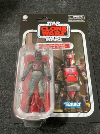 Figura de acción del Capitán Mandaloriano de Star Wars: The Clone Wars. - Empaque estilo vintage. - Incluye accesorio. - Marca Kenner.