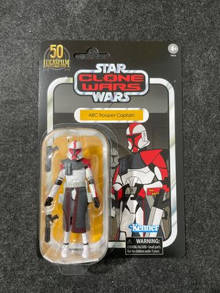 Figura de acción del ARC Trooper de Star Wars: The Clone Wars. Presentada en su empaque original. - Figura de 6 pulgadas. - Incluye accesorios. - Conmemoración 50 años de Lucasfilm.