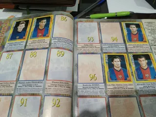 Colección de cromos del F.C. Barcelona. - Incluye jugadores como Luis Suárez, Mascherano, Abidal, lamine yamal, Coutinho, Arthur, Dani Alves, Dembélé, Iniesta, Piqué y más. - Varios cromos de la colección Show y Superstar. - Incluye escudo del club y logo de 1899. Album de cromos de futbol liga española Flexo aplique Panini mundicromo de la liga romántica fichas de la historia