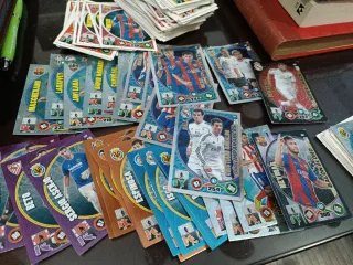 Gran colección de cromos de la Liga Española de Panini Más de 1300 cromos fichas de la liga desde 14-15 a 25-26 menos la 18-19 cromos liga este Panini Incluidos en esa cantidad 130 del mundial Qatar 40 euro 24 100 de vamos selección y el album de la selección En total más de 1300 No Correos Pasa de 2k - Incluye múltiples cromos de jugadores. - Diversos jugadores y equipos de la liga. Hay de todo. Messi Ronaldo ansu Fati lamine yamal Benzema pedri. ....... Álbum de cromos de futbol liga española Flexo aplique Panini mundicromo de la liga romántica fichas de la historia