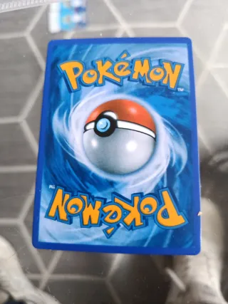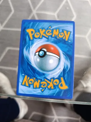 Carta Pokémon Pikachu on the Ball. - Carta de color dorado. - Ilustración de Pikachu jugando al fútbol. - Incluye el símbolo de energía de rayo.