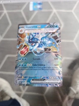 Carta Pokémon Gyarados EX Full Art. - Ataque Cascada: 100 puntos de daño. - Ataque Cola Tiránica: 180+ puntos de daño. - Debilidad x2. - Resistencia. - Retirada. - Regla para los Pokémon EX: Cuando tu Pokémon EX queda fuera de Combate, tu rival coge 2 cartas de Premio. - Código: SVIN 033/198.