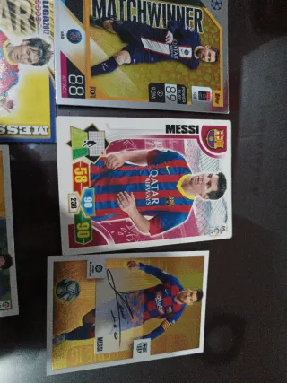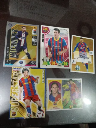 Colección de cromos de fútbol de Lionel Messi. 5 unidades cromos fichas Messi Panini mundicromo - Incluye cromos de Topps Matchwinner y Liga 2012. 2010 - Representa a Messi con el F.C. Barcelona y Paris Saint-Germain. - Cromos con estadísticas de juego como Power Play y Attack. Album de cromos de futbol liga española Flexo aplique Panini mundicromo de la liga romántica fichas de la historia