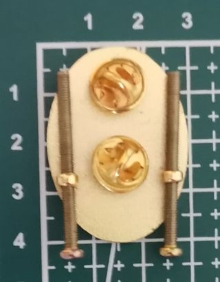 Distintivo curso de la Unidad Militar de Emergencias (UME) para oficiales. Dorado con acoples para las barras de antigüedad. - Diseño circular con esmaltes en rojo, blanco y azul marino. - Detalle dorado central con emblema. - Dos tornillos para sujeción en la parte trasera.