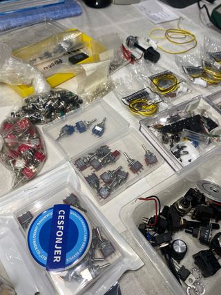 Lote de aproximadamente 30 interruptores para modelismo y maquetas ferroviarias. Incluye: – Interruptores de palanca con 3 patillas (tipo inversor SPDT) – Interruptores de palanca con 6 patillas (tipo DPDT), varios de color rosa – Diferentes colores: rojo, azul, rosa – 6 lamparitas originales Faller para iluminación de maquetas Material ideal para paneles de control de trenes, desvíos, señales o iluminación. Material procedente de stock antiguo / aficionado al modelismo. Se vende el lote completo. Precio acorde al valor del material.
