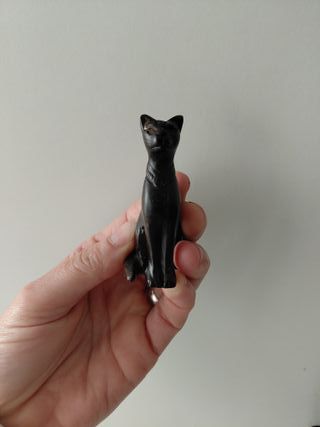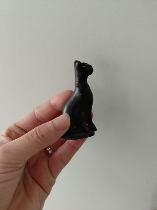 Pequeña estatuilla de la diosa egipcia Bastet. - Diseño detallado. - Acabado oscuro.