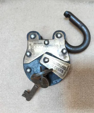 Candado vintage de la marca Wattan & Nadeem Lock. - Modelo: Nº 595 - Diseño clásico y robusto. - Incluye llaves
