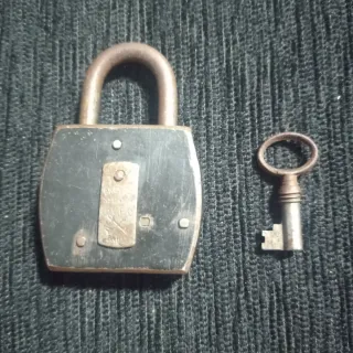 Candado antiguo en muy buenas condiciones, con su llave original. - Diseño clásico y robusto. - Ideal para coleccionistas o como elemento decorativo. NO NEGOCIABLE