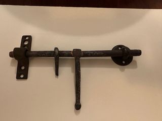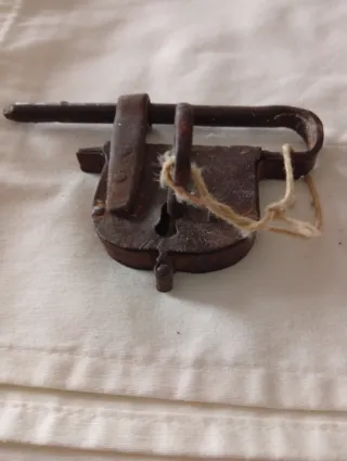 Candado antiguo de forja, en buen estado y operativo. Más los trastos que se ven en la foto - Mecanismo de cierre funcional. - Diseño clásico y robusto.