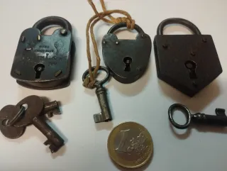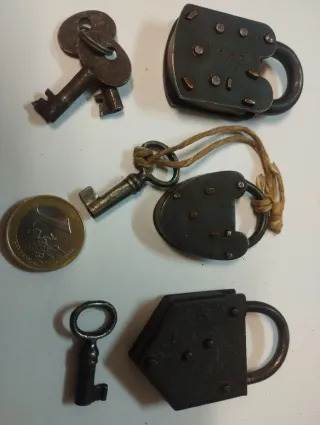 Lote 3 candados antiguos pequeños + llaves