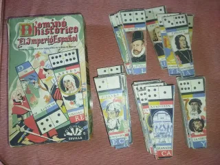Antiguo y raro juego de mesa. Dominó Histórico "El Imperio Español" Ediciones Luz Sevilla. Año:20. IFichas con iustraciones de personajes y eventos históricos. - Incluye caja original. Acepto cambios por llaves, candados antiguos, piezas de plata, monedas, billetes..