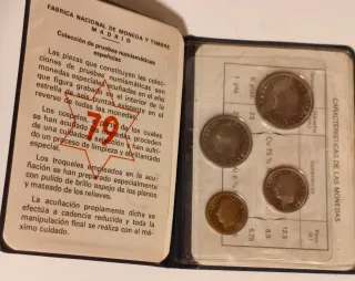 Lote de tres carteras de pruebas numismáticas de la Fábrica Nacional de Moneda y Timbre (FNMT). - Incluye carteras de los años 1976, 1977 y 1979. - Cada cartera contiene pruebas numismáticas. - Fabricadas en Madrid.