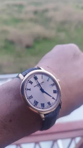 Impresionante Reloj Raymon weil, de la linea Tocatta. Está Marca Suiza independiente y con todo el saber hacer relojero, íntimamente ligids a la música, en su línea Tocatta. Caja 39 mm. Acero pvd oro. Cristal zafiro AR Dial precioso en un ligeramente tono rosado, con incides romanos. Correa de cuero gris de piel cuero italiano original, ton hebilla y corona firmadas. Cuarzo Suizo gama alta, hiper preciso. Elegancia y calidad en su máxima expresión. Está en estado impoluto, full set, y documentación. Actualmente ronda los 900 euros en catálogo. Estoy vendiendo piezas de mi colección, por renovación. Ligeramente negociable. Absten