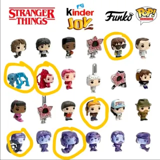 Col·lecció de figures Funko Pop de Stranger Things. Tinc els personatges de la foto 1 repetits, els canvio pels que estan assenyalats a la foto 2.