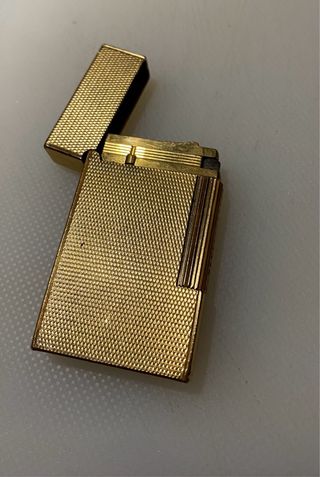 Elegante mechero Dupont Gatsby en acabado dorado. Su diseño clásico y textura lo hacen un accesorio distintivo. - Acabado dorado. - Diseño texturizado.