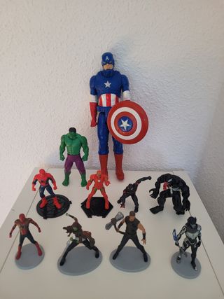 10 figuras de acción de Marvel. En buen estado. El capitán América mide 29 cm.