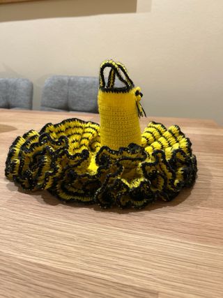 Precioso vestido sevillana de ganchillo para muñeca Nancy. Es de color amarillo y negro, con una falda de mucho volante. esta hecho a ganchillo con lana. - Hecho a mano. para la Nancy famosa en los años 75. no hay otro igual, le queda como un guante a la muñeca.