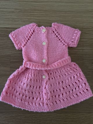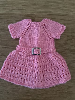 Precioso vestido de punto para muñeca Nancy. Es de color rosa chicle, queda muy bien puesto, hecho a medida Nancy años 70-75. la braguita es de ganchillo con perlé. - Tejido a mano con delicados detalles, es de lana. - Cierre de botones en la espalda. - Incluye un cinturón para ajustar a la cintura.