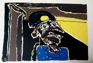 Serigrafía de Miguel Ángel Lombardia. Minero. Lamina 50 x 68,5 cm Mancha 34 x 49 cm Ejemplar 28/75