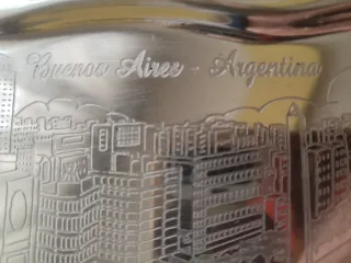 Bandeja metálica con grabado de la plaza de la República de la ciudad de Buenos Aires, Argentina. Un recuerdo de la capital argentina.