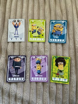 Colección de cartas de los Minions, casi completa. Incluye personajes como Kevin, Stuart, Dave y Joven Gru. - Cartas con diferentes valores de energía, fuerza y potencia. - La parte de detrás de las cartas se convierte en puzzles (última fotografía)
