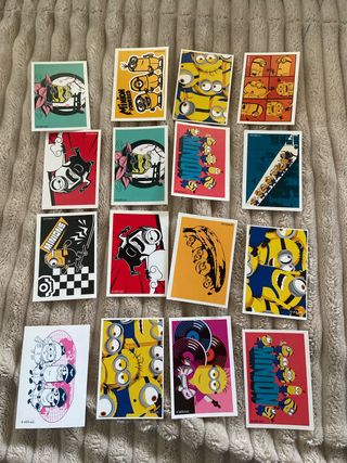 Colección de cromos de los Minions. Cada cromo presenta diseños únicos y divertidos de los personajes. - Diseños variados de los Minions. - Ideal para coleccionistas. - Imágenes coloridas y detalladas. - Hay repetidas