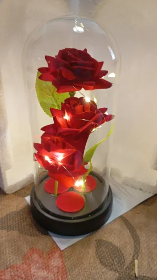 Regala algo bonito 😍y eterno ♾️ Preciosa cúpula con una rosa roja artificial que parece eterna, adornada con luces LED cálidas. - Rosa de color rojo intenso. - Base negra. - Luces LED integradas.