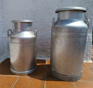 Se venden cántaros de leche antiguos (aluminio). En perfecto estado de conservación. 90 euros la unidad Cántaros pequeños 20 litros: Altura 46 cm Diámetro 29 cm Cántaros grandes 40 litros: Altura 60 cm Diámetro 34 cm