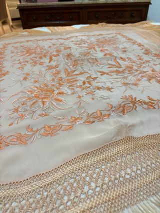 Mantón cuadrado coral bordado