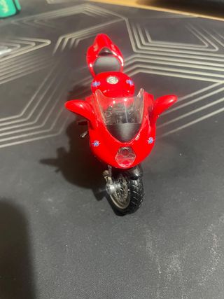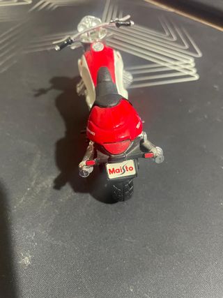 Réplica detallada de la motocicleta Ducati 998R a escala 1:18. - Fabricada por Maisto. Sin peana ni caja, siempre en vitrina, opción cambio por coche escala 1:18, siempre acordando precios o acuerdos. - Diseño deportivo en rojo y blanco. - Ruedas plateadas y detalles dorados en la suspensión.
