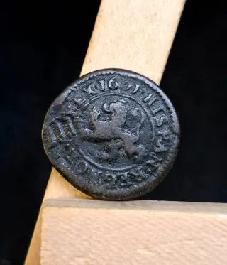 Moneda: 6 maravedies resellados Año: 1641/42 Peso: 2.78g Diámetro: 20 mm Ceca: no visible Ref: MON0116 Resello de 6 maravedies de 1641/1642 , sobre moneda de 4 maravedies de Felipe III Explora más monedas y piezas de colección en nuestra página. 💯 Posibilidad de unificar lotes!!!🔄