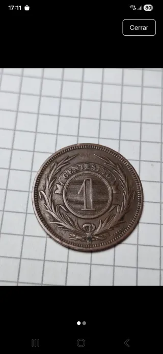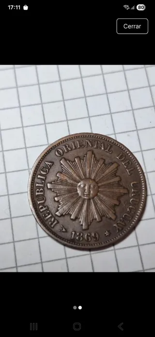Uruguay 1869. 1 centésimo. Material-Cobre estaño cinc. Tamaño 25mm. Peso 5gr. Ceca H Heaton Mint Birmingham Reino unido. Se envía la de la foto en sobre acolchado. Sólo envíos