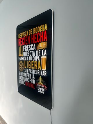 Cartel luminoso de Cerveza de Bodega Estrella Galicia. - Está en la pared de una casa - Impecable!!! Como nuevo - Tiene luz y funciona - Frontal de metacrilato de alta calidad - Enorme!! Medidas: 83x116 - Rebajado a 95 €