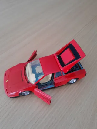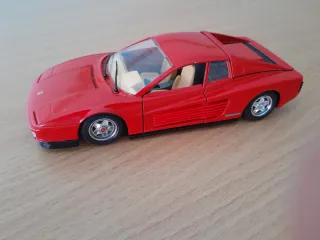 Réplica detallada de un Ferrari 512 Testarossa a escala 1:18. Un modelo icónico para coleccionistas con faros escamoteables mediante resorte en la parte baja,modelo muy detallado,precio 25€ - Color rojo vibrante. - Diseño deportivo característico. Mira,burago,maisto,maqueta,coleccionismo