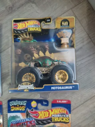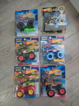 Lote de 6 monster trucks Hot Wheels. 12€ cada uno o 3x32€. Más modelos en mi perfil. -5 Alarm Sharks VS dinos -Tiger Shark -Rageasaur sharks VS dinos (ruedas negras) -Rageasaur sharks VS dinos (ruedas naranja/rojo) -Motosaurus Trophy champions. -Race Ace ESTÁ VENDIDO. - Diseños variados y coloridos. - Perfectos para coleccionistas y aficionados.