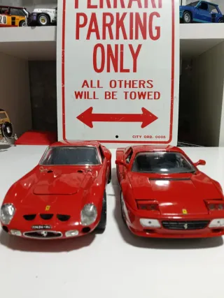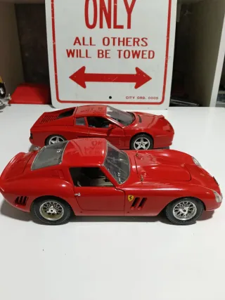 Lote de dos coches a escala de la marca Ferrari,un 512 Testarossa y un GTO en buen estado,a escala 1/18 - Color rojo. - Réplicas detalladas.